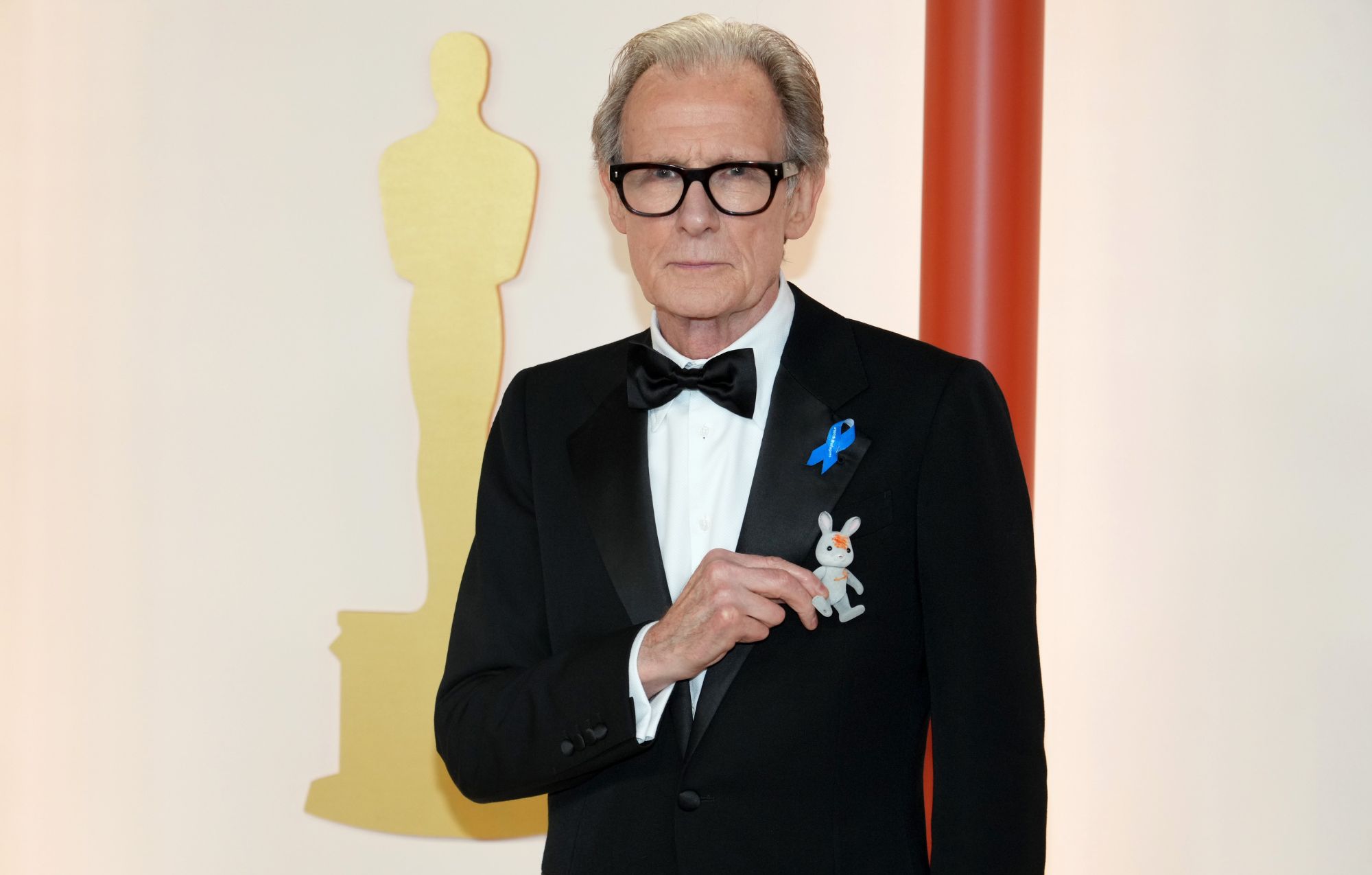 Bill Nighy With The Stained Babblebrook Family Sylvanian Rabbit Belonging To One Of His Granddaughters At The Oscars Ceremony.